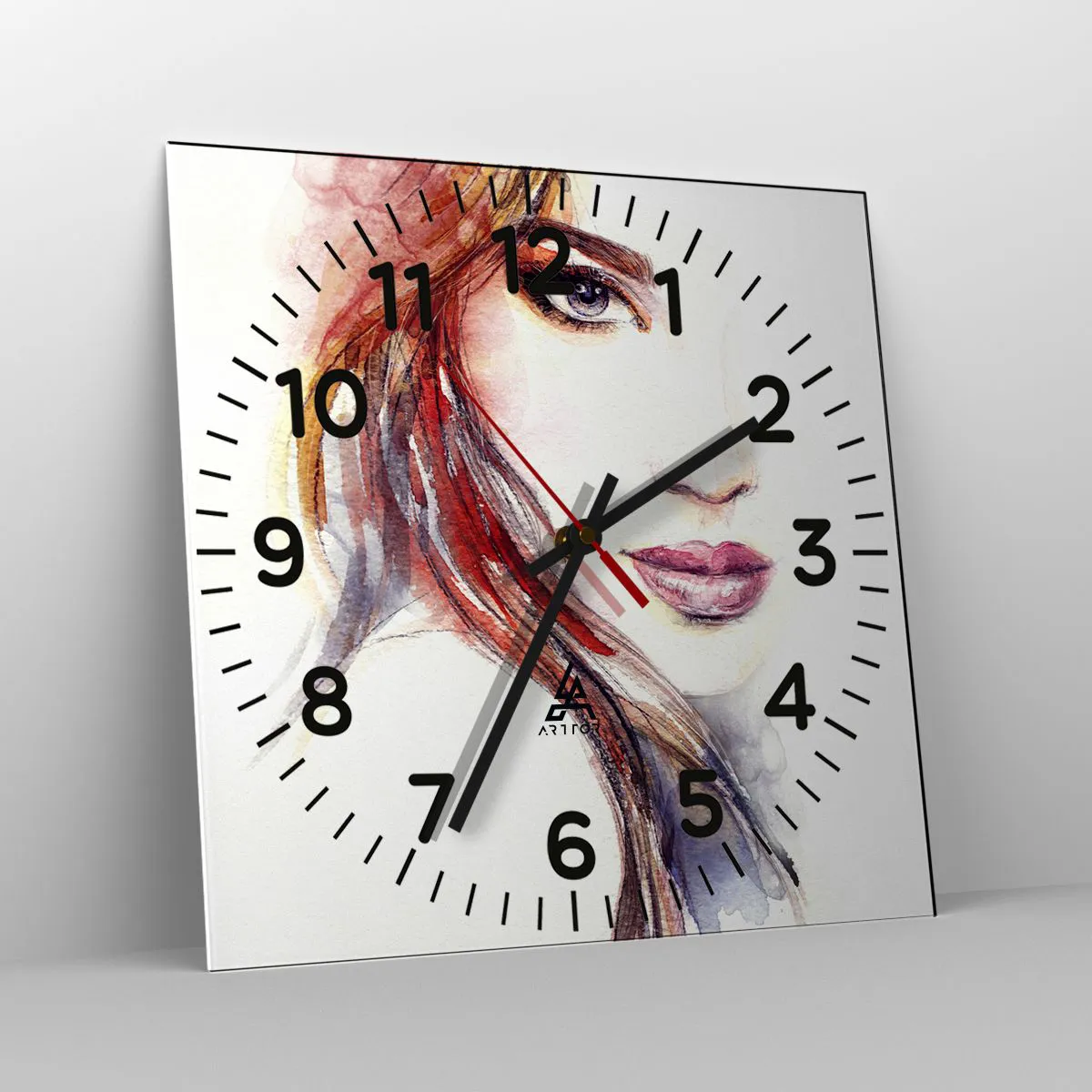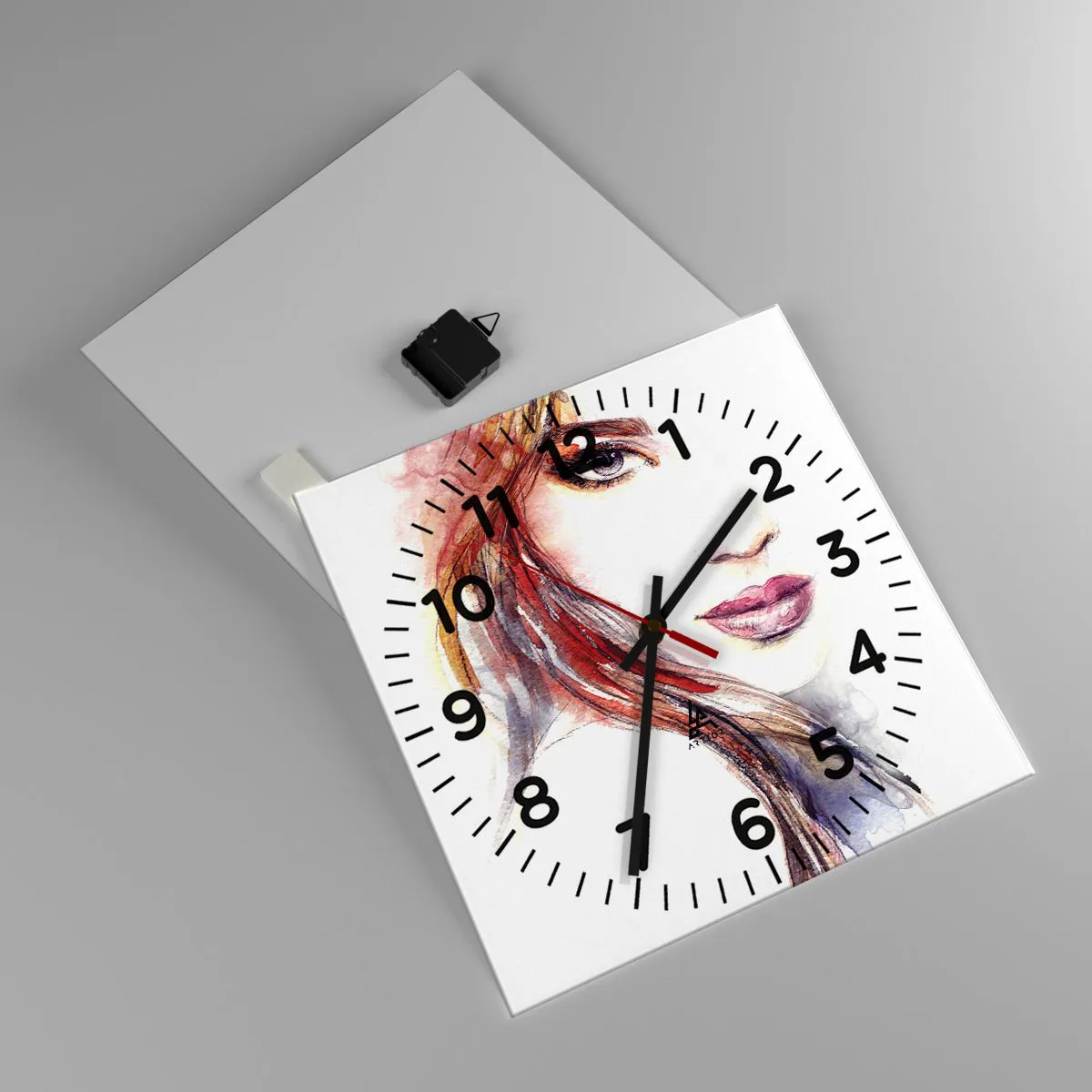 Väggklocka - Klocka på glas - Vademecum - följ efter mig - 40x40 cm