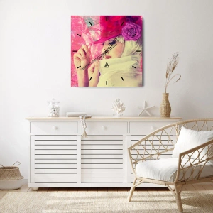 Väggklocka - Klocka på glas - Retroporträtt i rosa ångor - 40x40 cm