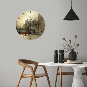 Väggklocka - Klocka på glas - Träff i London-dimman  - 30x30 cm