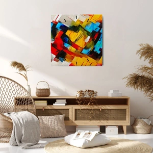 Väggklocka - Klocka på glas - Färgmix - 30x30 cm