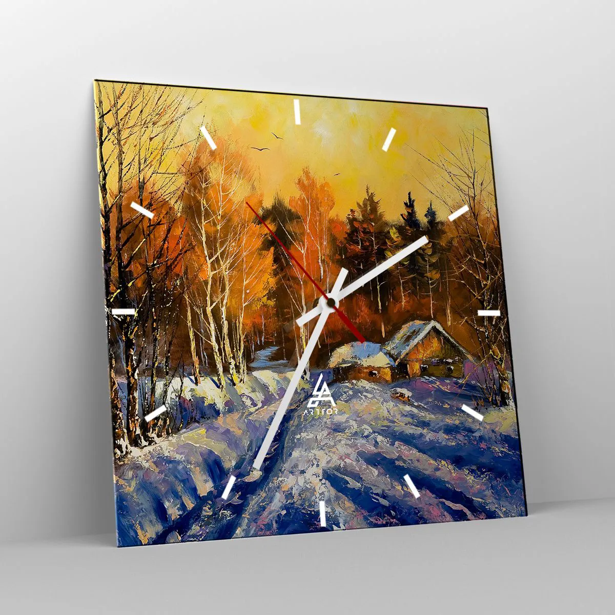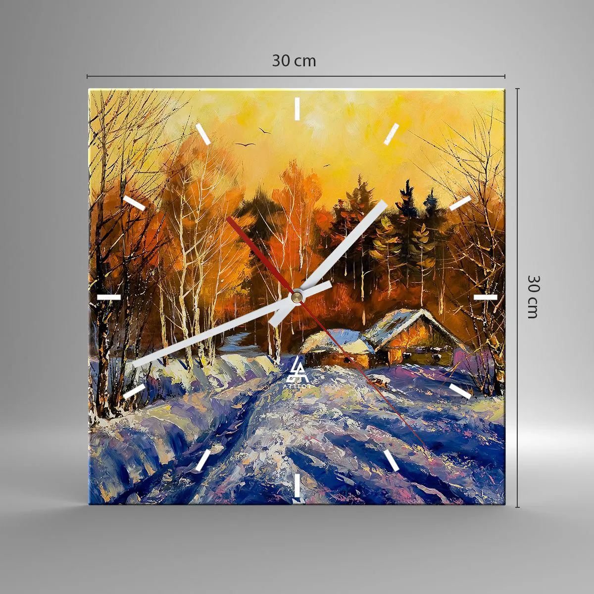Väggklocka - Klocka på glas - Vinterimpression i solen - 30x30 cm