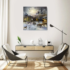 Väggklocka - Klocka på glas - Ryska vinterns magi - 40x40 cm