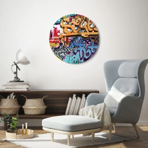 - En rund väggklocka med unik graffitistil. Det perfekta tillskottet till moderna inredningar.