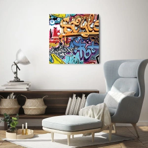 Väggklocka - Klocka på glas - En urtavla med graffitimotiv i ljusa färger - 30x30cm - Muralmålning... - Modern väggdekoration för vardagsrum, kök och sovrum ARTTOR