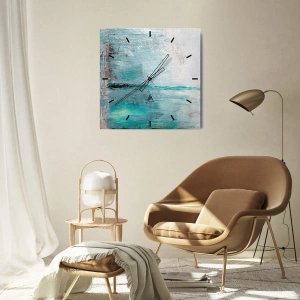 Väggklocka - Klocka på glas - Horisontellt i blått - 30x30 cm