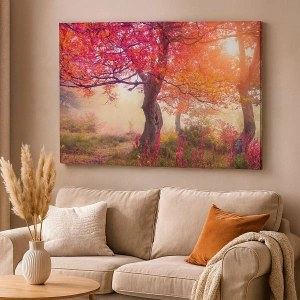 Denna 70x50 cm canvastavla i horisontellt format är ett utmärkt val för dem som letar efter inredning inspirerad av naturen. Noggrant reproducerade detaljer av träd och löv, samt varma färger, gör denna målning iögonfallande och introducerar en unik atmosfär i interiören.