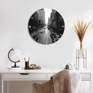 Klockan är tillverkad av glas med 4mm tjocklek. Klockans utförandeteknik överensstämmer med säkerhetsklassen 2B2 enligt standarden PN-EN 12600:2004 vilket garanterar slagtålighet. Klocka på glas är klar för upphängning - är försedd med metallögla fastsatt på klockans baksida samt en distans av skum som justerar avståndet mellan klockan och väggen. Klockan har en tyst steglös mekanism som strömförsörjs med 1,5V AA batteri (batteriet ingår inte).