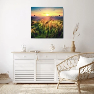Väggklocka - Klocka på glas - Trädtoppar och bergstoppar - 40x40 cm