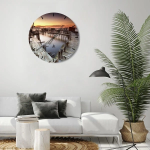 Väggklocka - Klocka på glas - Pittoresk pir vid solnedgången - 30x30cm - Äkta vara, ingen attrapp för turister - Modern väggdekoration för vardagsrum, kök och sovrum ARTTOR