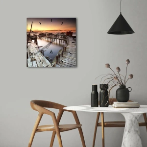 Ge din interiör harmoni och frid med en väggklocka som avbildar en pittoresk pir vid solnedgången. Detta subtila motiv gläds med sina varma färger och unika landskap, vilket skapar en atmosfär av avkoppling och lugn.