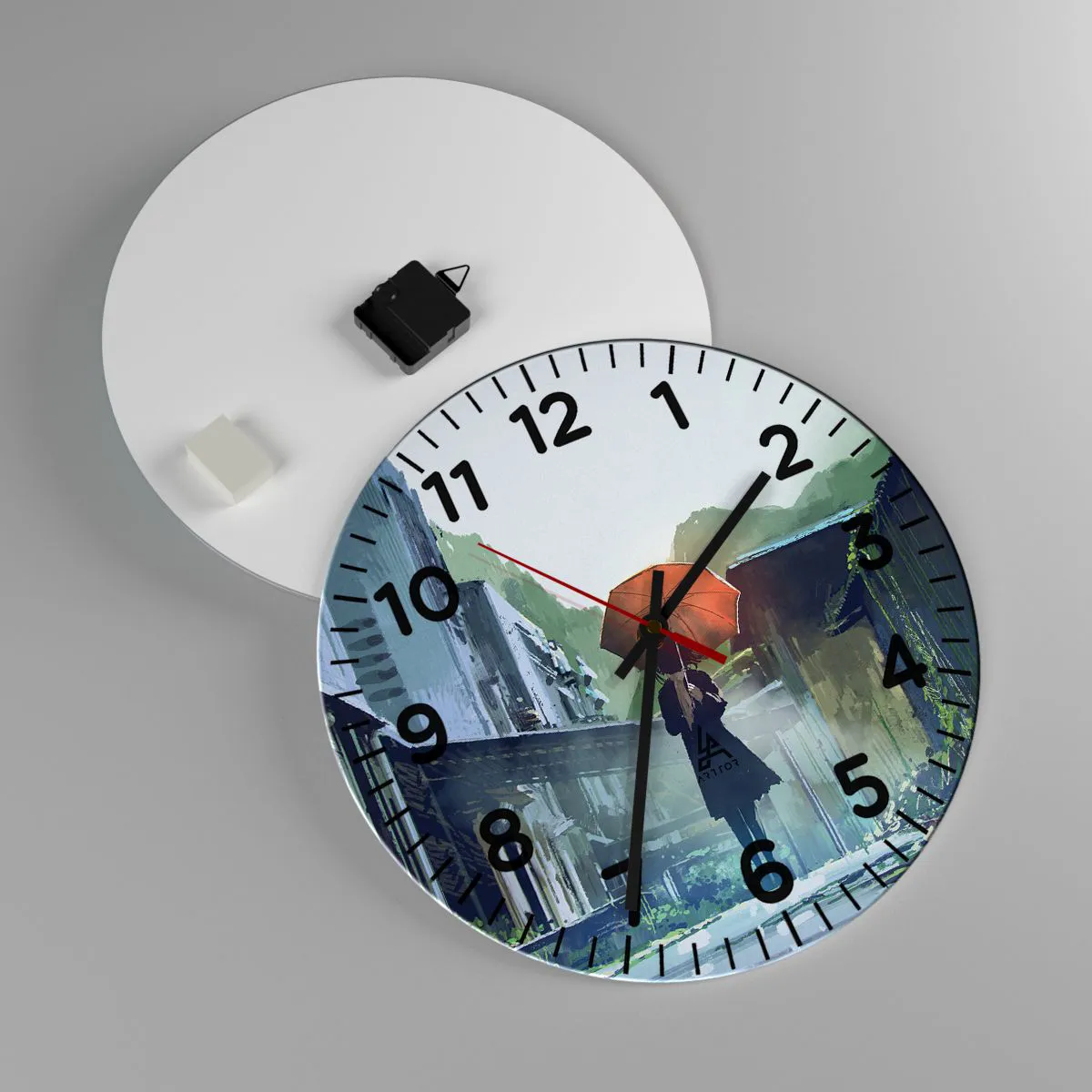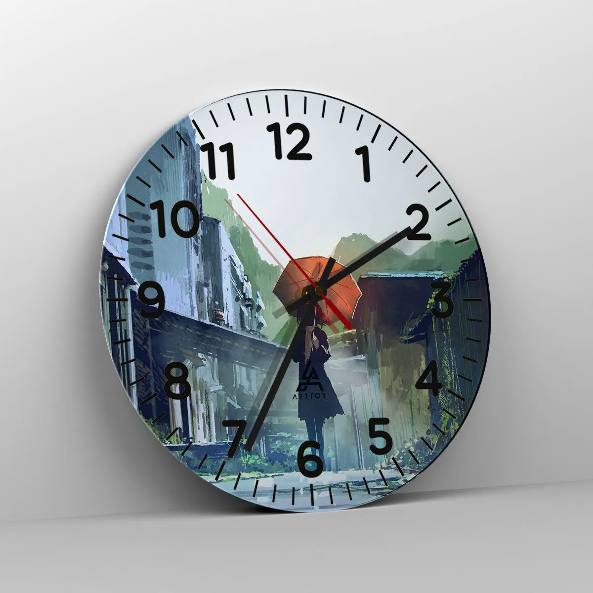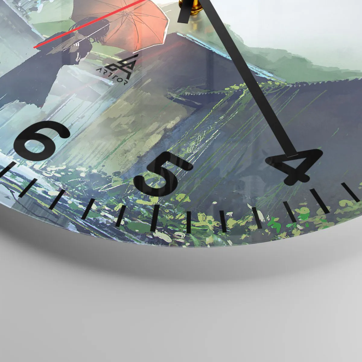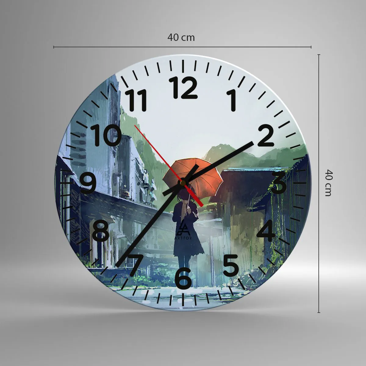 Väggklocka - Klocka på glas - Uppfriskande regn - 40x40 cm