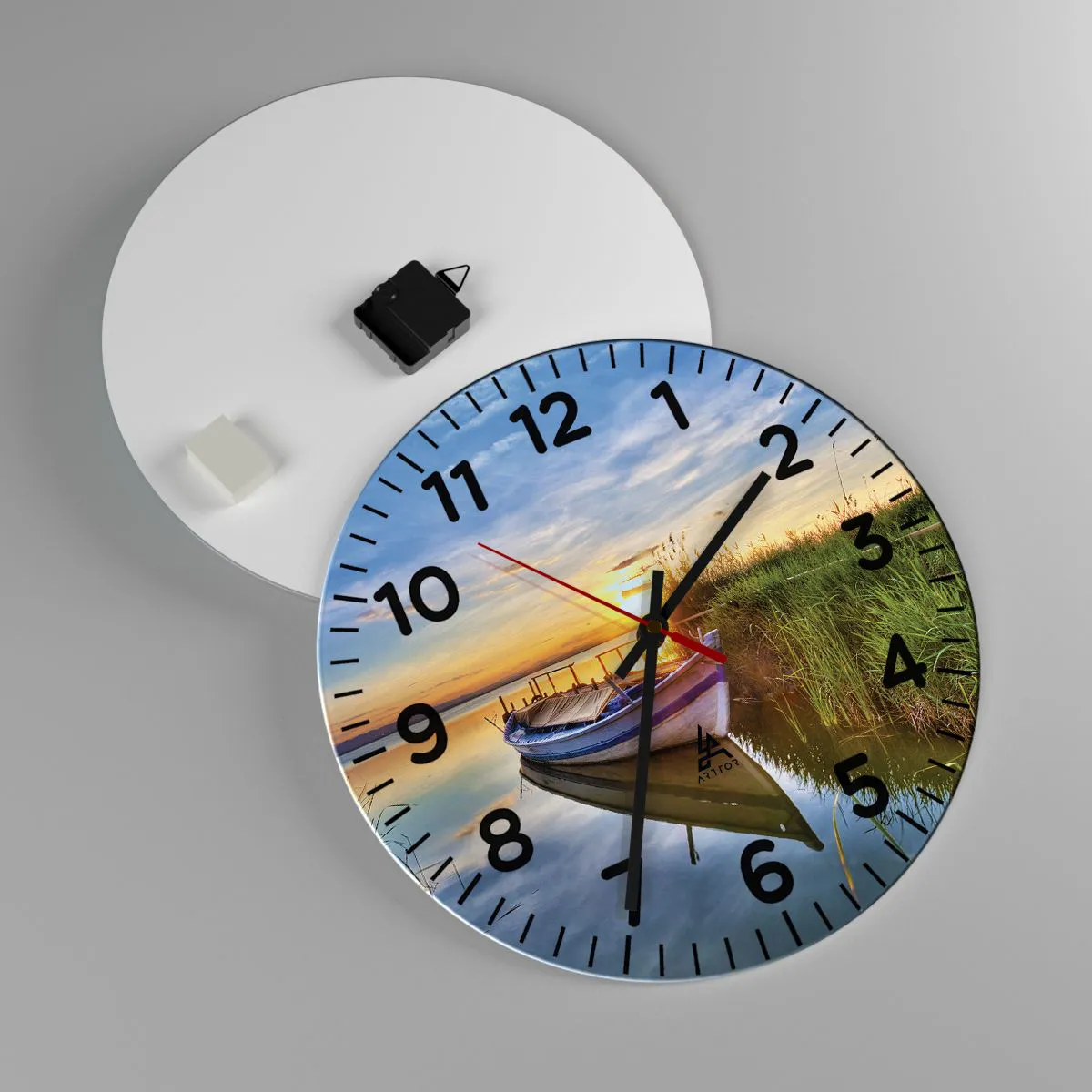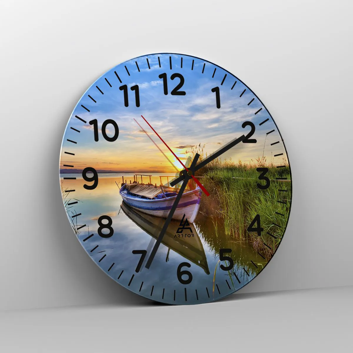 Klockan är gjord av slitstarkt 4 mm tjockt glas. Glas behåller tryckets naturliga färger