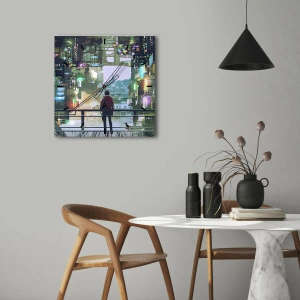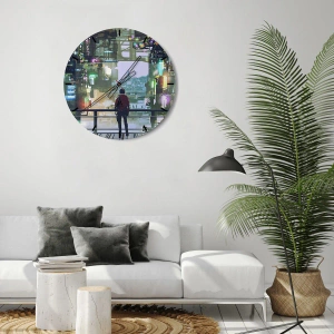 Väggklocka - Klocka på glas - Två världar - 40x40 cm