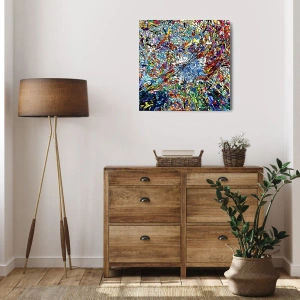Väggklocka - Klocka på glas - Glasmålning - droppar - 40x40 cm