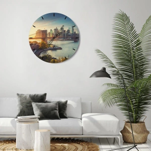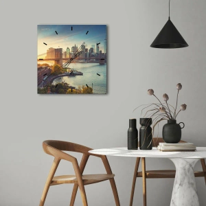 Väggklocka - Klocka på glas - Storstadsgryning - 40x40 cm