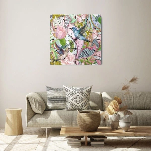 Väggklocka - Klocka på glas - Inbäddade i klätterväxter - 30x30 cm