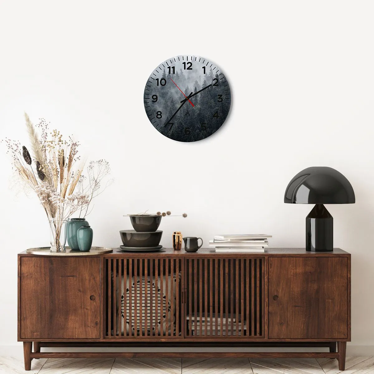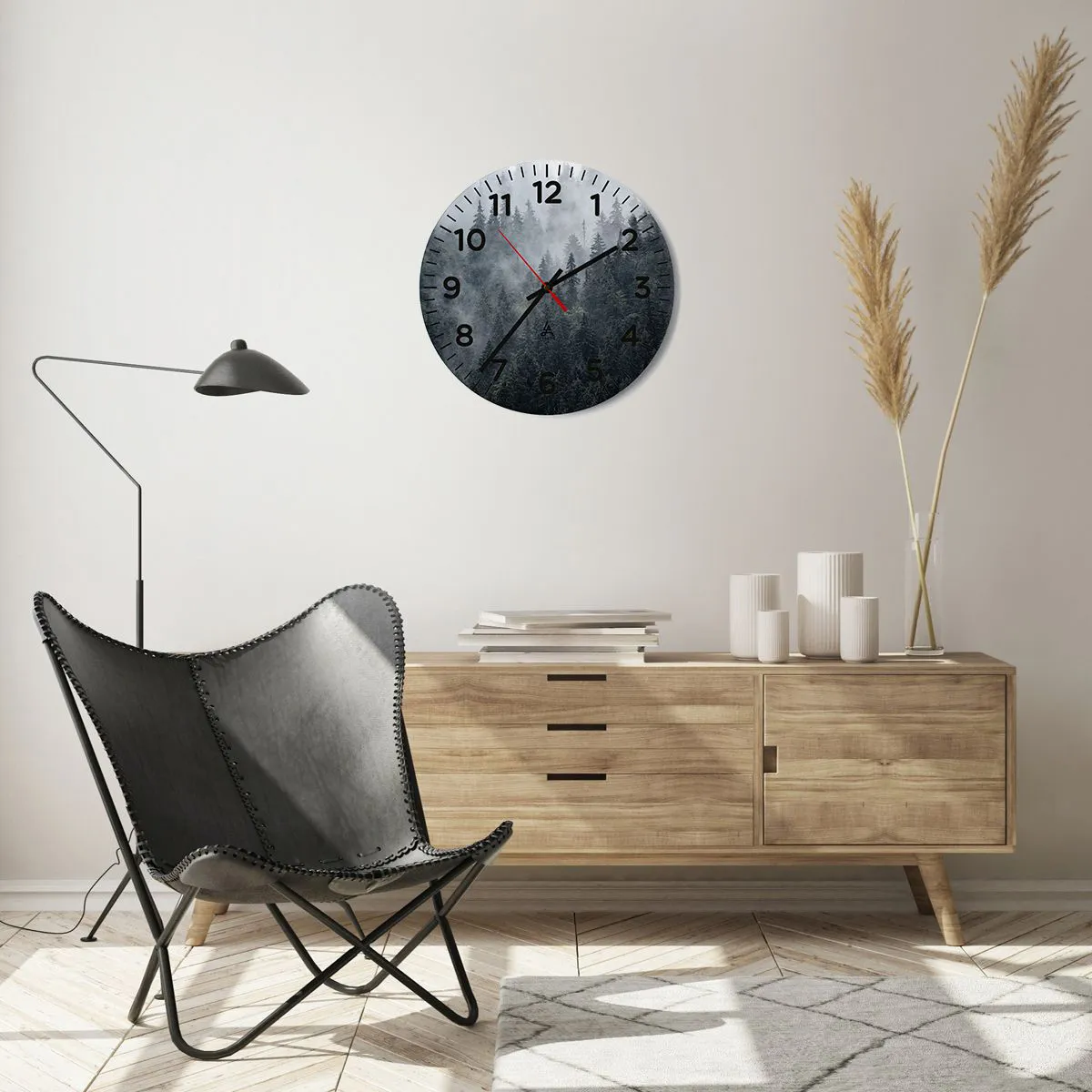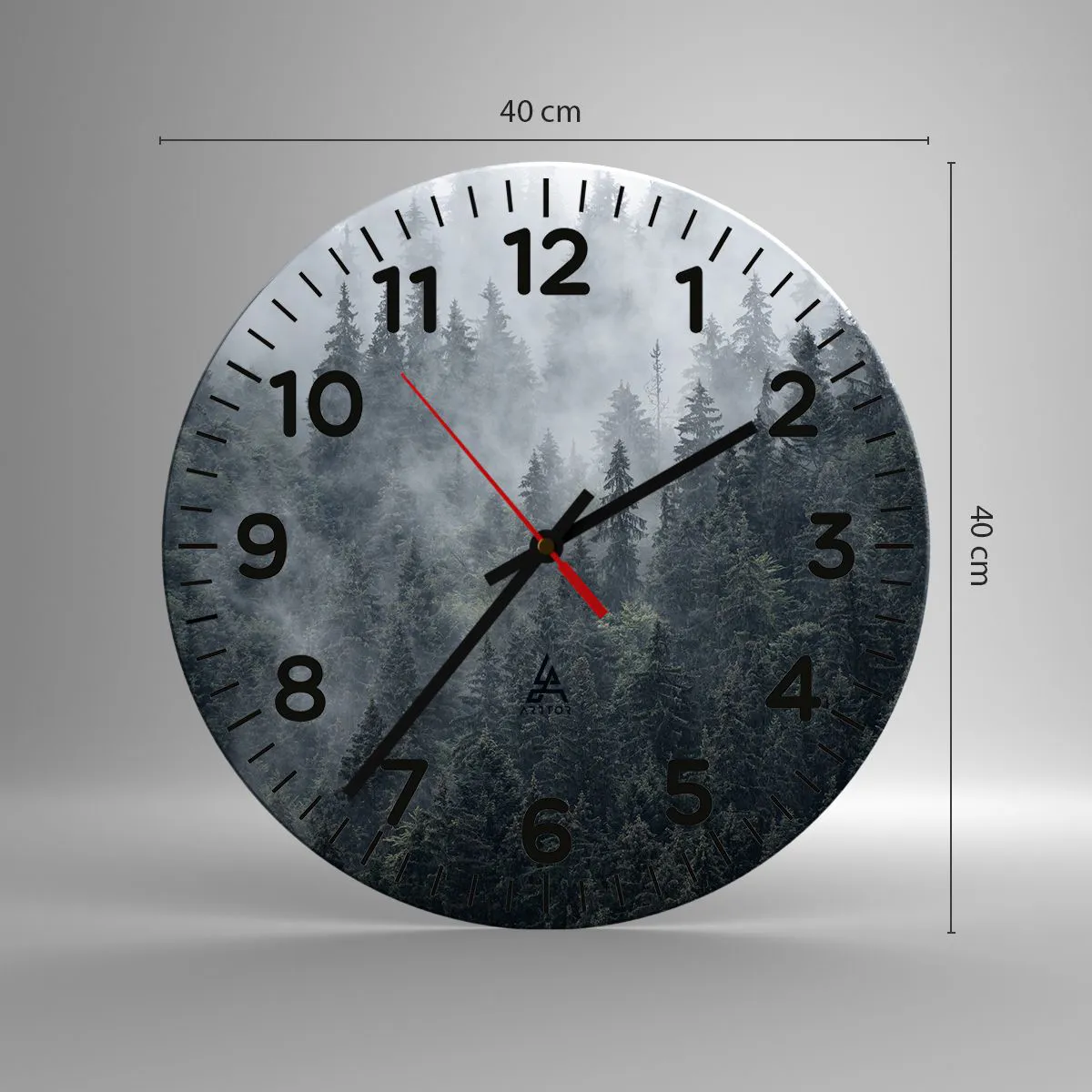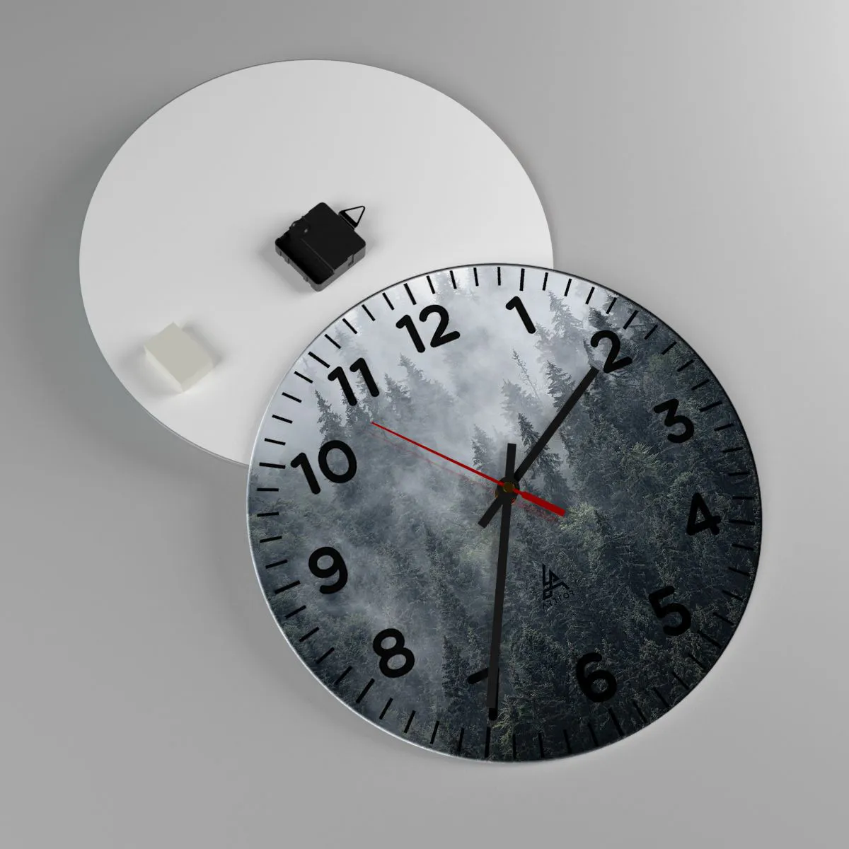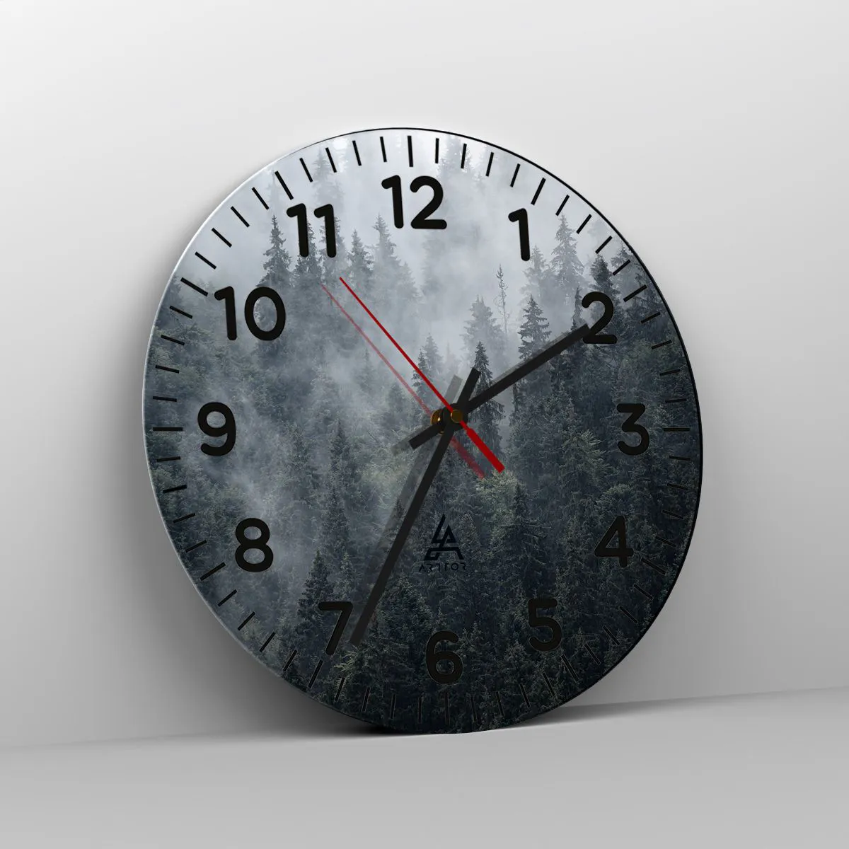 Väggklocka - Klocka på glas - Gryning i skogen - 40x40 cm