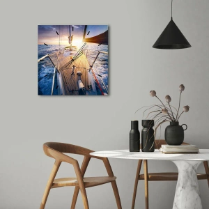 Väggklocka - Klocka på glas - Springa på vågorna - 40x40 cm