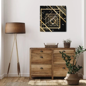 Väggklocka - Klocka på glas - Gyllene geometri - 30x30 cm