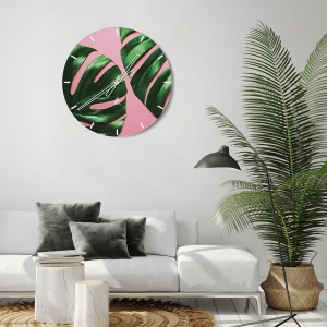 Väggklocka - Klocka på glas - Grön rendez-vous - 40x40 cm