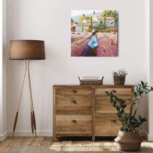 Väggklocka - Klocka på glas - Lavendelflicka - 30x30 cm