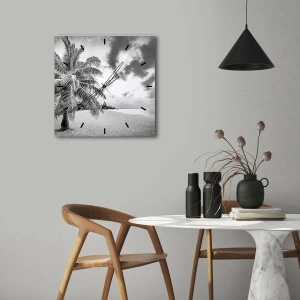Klockan är tillverkad av glas med 4mm tjocklek. Klockans utförandeteknik överensstämmer med säkerhetsklassen 2B2 enligt standarden PN-EN 12600:2004 vilket garanterar slagtålighet. Klocka på glas är klar för upphängning - är försedd med metallögla fastsatt på klockans baksida samt en distans av skum som justerar avståndet mellan klockan och väggen. Klockan har en tyst steglös mekanism som strömförsörjs med 1,5V AA batteri (batteriet ingår inte).