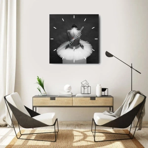 Klockan är tillverkad av glas med 4mm tjocklek. Klockans utförandeteknik överensstämmer med säkerhetsklassen 2B2 enligt standarden PN-EN 12600:2004 vilket garanterar slagtålighet. Klocka på glas är klar för upphängning - är försedd med metallögla fastsatt på klockans baksida samt en distans av skum som justerar avståndet mellan klockan och väggen. Klockan har en tyst steglös mekanism som strömförsörjs med 1,5V AA batteri (batteriet ingår inte).
