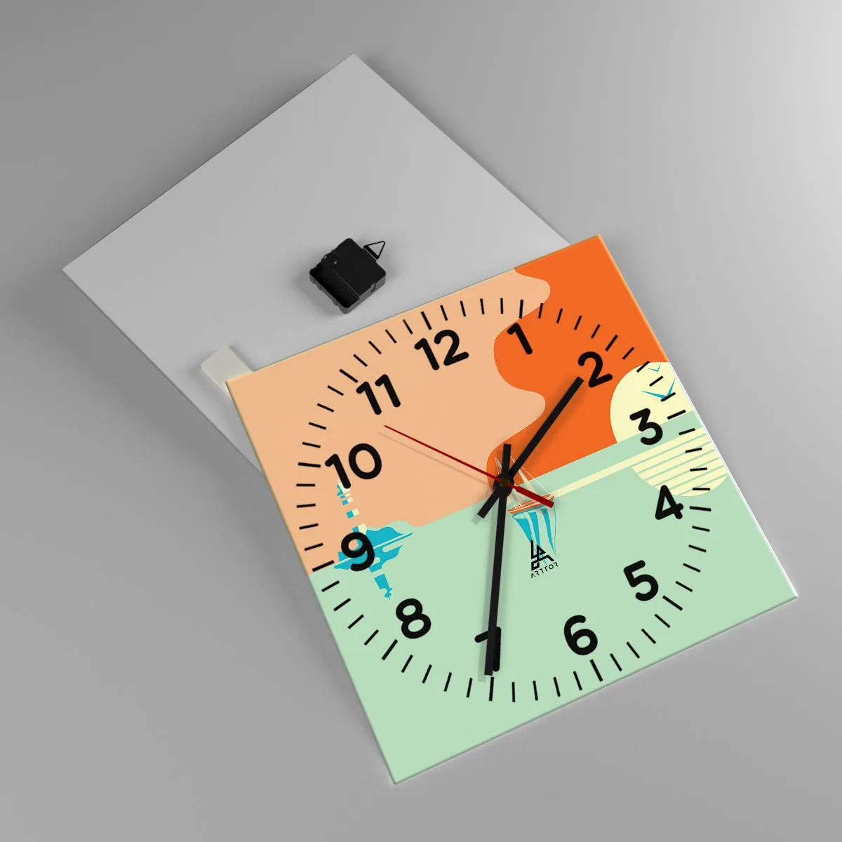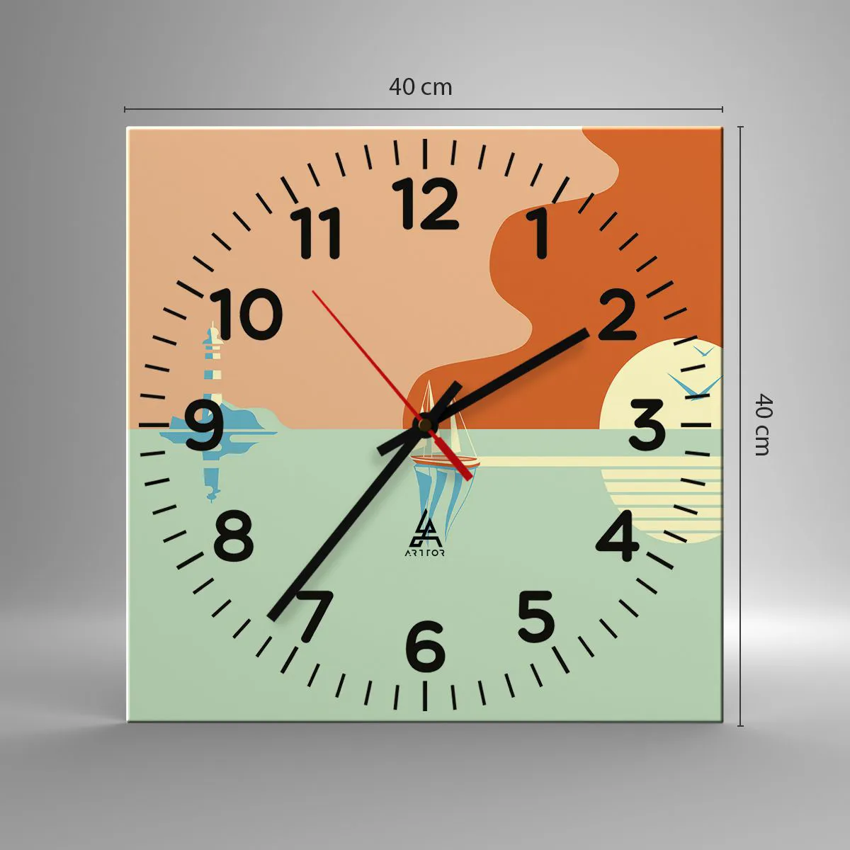 Väggklocka - Klocka på glas - Perfekt havslandskap - 40x40 cm