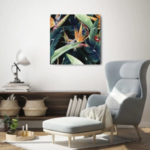 Väggklocka - Klocka på glas - Tropikens brinnande blommor - 30x30 cm