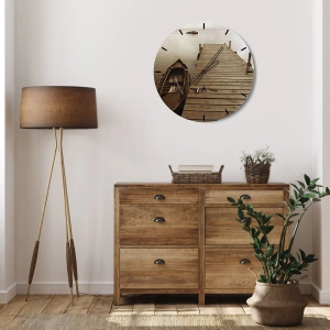 Väggklocka - Great Peace - Båt på en träpir i sepia