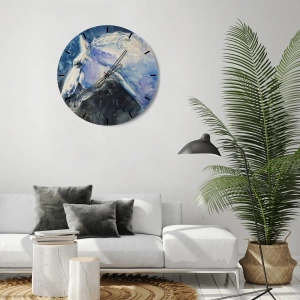 Väggklocka - Klocka på glas - Porträtt i blått sken - 30x30 cm