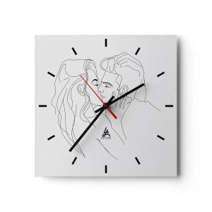 Väggklocka - Klocka på glas - En minimalistisk teckning av ett förälskat par - 30x30cm - Med samma streck - Modern väggdekoration för vardagsrum, kök och sovrum ARTTOR