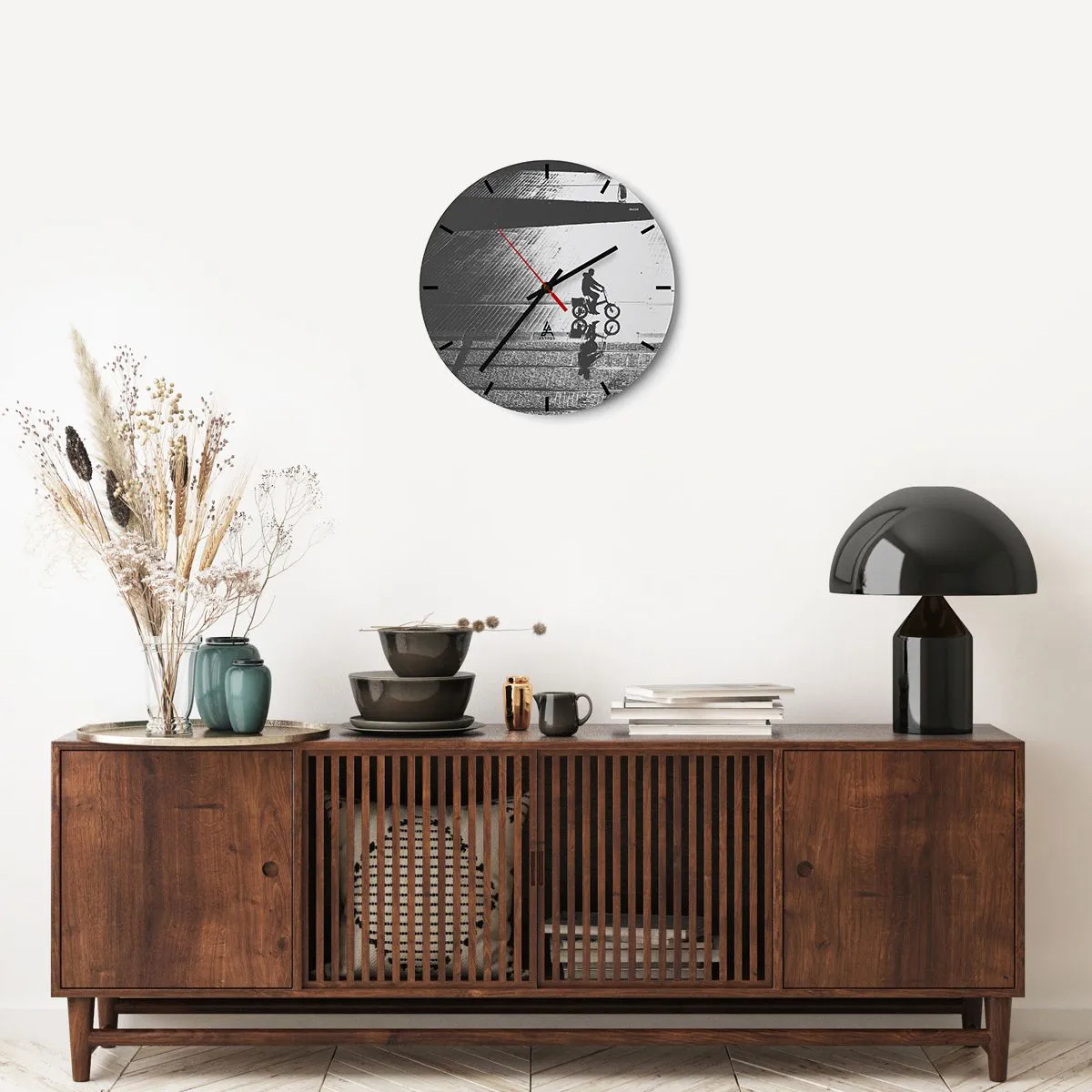 Väggklocka - Klocka på glas - Rakt fram genom staden - 40x40 cm