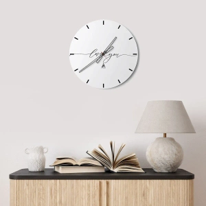 Väggklocka - Svart på vitt - Minimalistisk vit klocka med inskriptionen "I Love You"