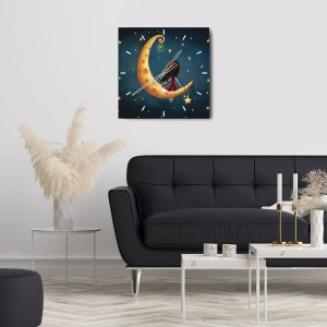 Väggklocka - Klocka på glas - En flicka som sitter på månen i en sagolik miljö - 30x30cm - En gång i tiden... - Modern väggdekoration för vardagsrum, kök och sovrum ARTTOR