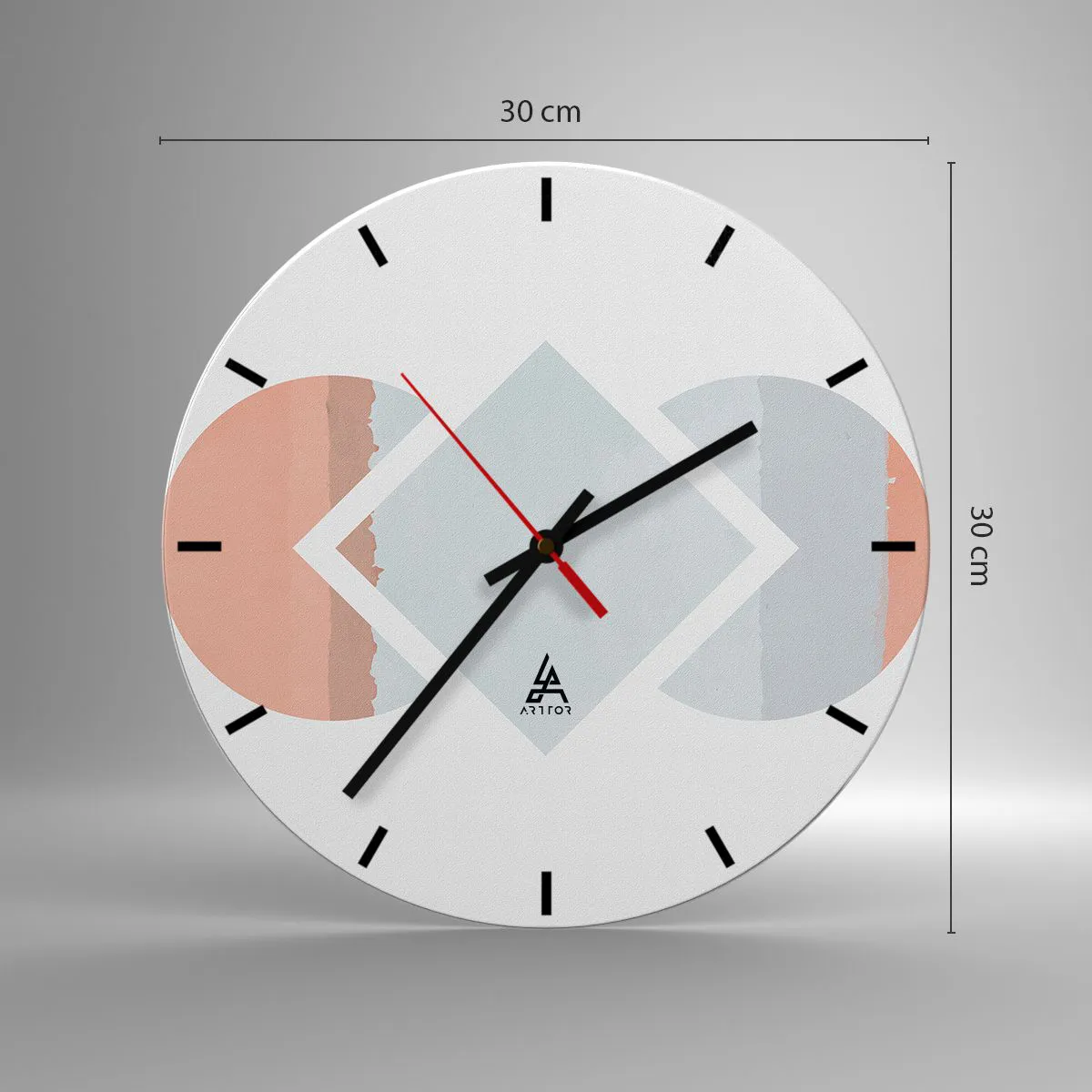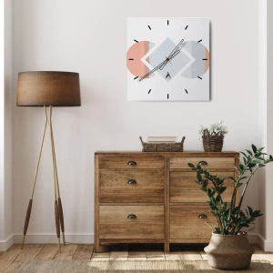 Väggklocka - Klocka på glas - Geometrisk komposition i pastellfärger - 30x30cm - Situationen är klar - Modern väggdekoration för vardagsrum, kök och sovrum ARTTOR