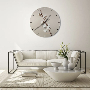 Väggklocka - Vid mjukhetens källa - En bomullskvist mot en beige bakgrund i minimalistisk stil