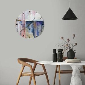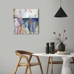 Väggklocka "Färgglada intryck och associationer" tar oss med in i den expressiva målerins värld, där färger och textur spelar en stor roll. Färgstänk i nyanser av blått, rosa, beige och lila flätas sömlöst samman och skapar en komposition full av intryck, djup och individuella tolkningar. Detta verk liknar ett fragment av en målning på duk – dynamiskt, men ändå harmoniskt.