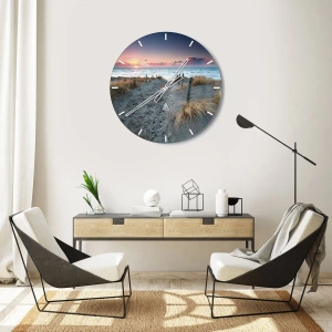 Väggklocka - Klocka på glas - Ingång till stranden vid solnedgången med havsutsikt - 30x30cm - Utspilld skenregnbåge... - Modern väggdekoration för vardagsrum, kök och sovrum ARTTOR
