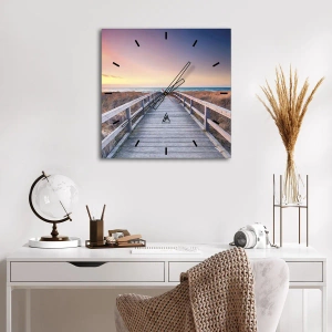 Väggklocka - Klocka på glas - Kvällssken i Östersjön - 30x30 cm