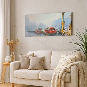 Duken är uppspänd i ramen. Sidor och kanter är täckta med tryck och skapar en fortsättning av bilden. Bilden är klar att hängas på väggen. Varje produkt har en ögla som är fastsatt i ramen samt en monteringssats (skruv + plugg).