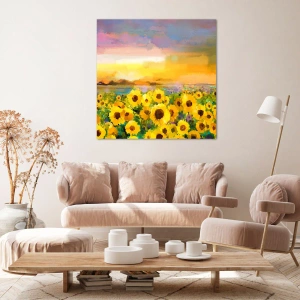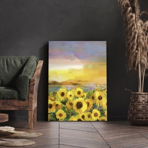"Solen själv steg ner till jorden" är en exceptionellt vacker målning på duk som föreställer ett fält av solrosor omslutet av det varma ljuset från den nedgående solen. Naturens charm fångad i denna komposition ger harmoni och frid till interiören. Solrosor, som symboliserar glädje och energi, visas omgivna av intensiva färger som betonar skönheten i sommarlandskapet.