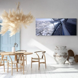 Duken är uppspänd i ramen. Sidor och kanter är täckta med tryck och skapar en fortsättning av bilden. Bilden är klar att hängas på väggen. Varje produkt har en ögla som är fastsatt i ramen samt en monteringssats (skruv + plugg).