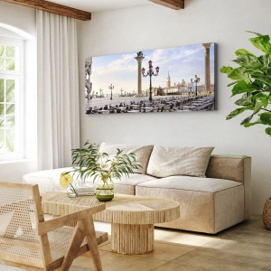 Duken är uppspänd i ramen. Sidor och kanter är täckta med tryck och skapar en fortsättning av bilden. Bilden är klar att hängas på väggen. Varje produkt har en ögla som är fastsatt i ramen samt en monteringssats (skruv + plugg).
