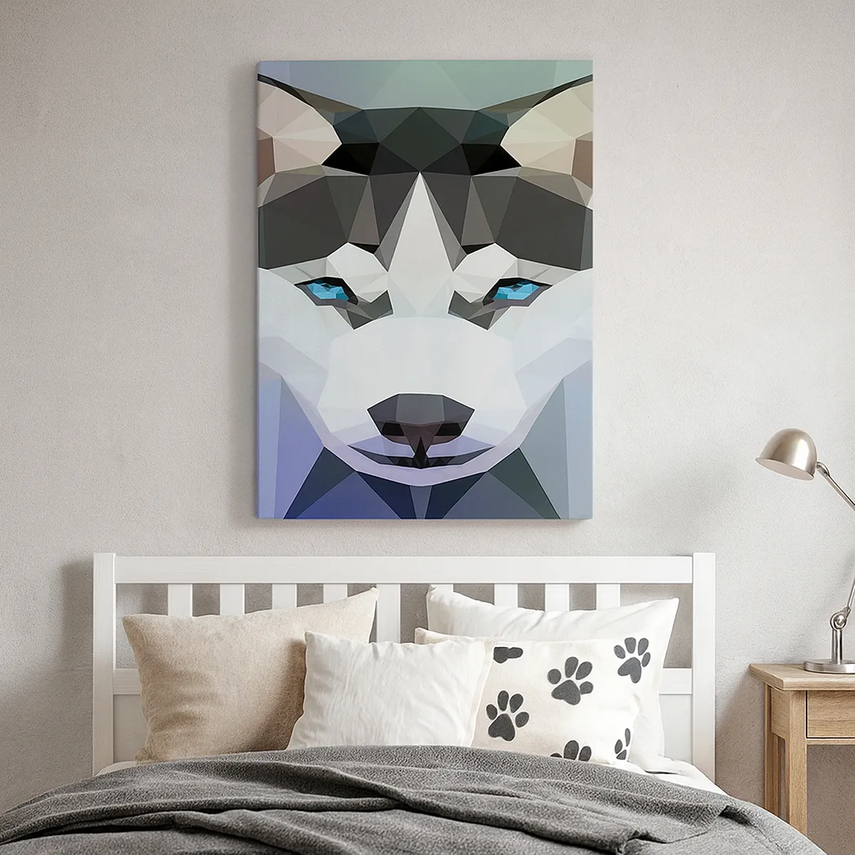 Duken är uppspänd i ramen. Sidor och kanter är täckta med tryck och skapar en fortsättning av bilden. Bilden är klar att hängas på väggen. Varje produkt har en ögla som är fastsatt i ramen samt en monteringssats (skruv + plugg).