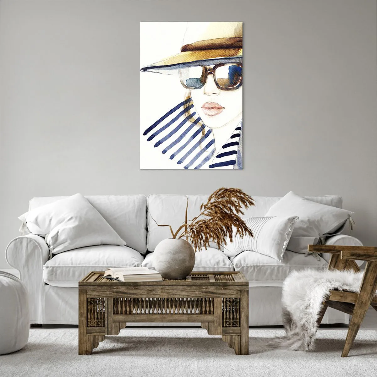 Duken är uppspänd i ramen. Sidor och kanter är täckta med tryck och skapar en fortsättning av bilden. Bilden är klar att hängas på väggen. Varje produkt har en ögla som är fastsatt i ramen samt en monteringssats (skruv + plugg).