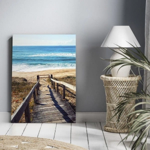 Duken är uppspänd i ramen. Sidor och kanter är täckta med tryck och skapar en fortsättning av bilden. Bilden är klar att hängas på väggen. Varje produkt har en ögla som är fastsatt i ramen samt en monteringssats (skruv + plugg).