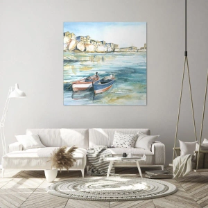 Målningen passar perfekt in i medelhavs-, minimalistiska och klassiska inredningar. Dess subtila pastellfärger ger lätthet och elegans till utrymmet, samtidigt som de skapar en atmosfär av vila och avkoppling. Det är den perfekta dekorationen för ett vardagsrum, sovrum eller lounge, så att du kan känna atmosfären vid havet.