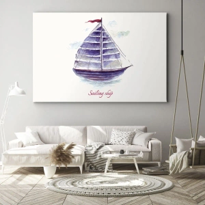 - Denna målning i akvarellstil föreställer en segelbåt på lugnt vatten med en subtil inskription. Pastellfärger och fina detaljer skapar en semesteratmosfär, perfekt för inredning inspirerad av havet, naturen och avkoppling.