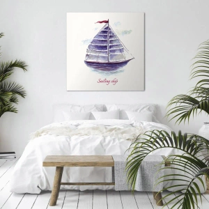 Canvastavla - Bild på duk - En akvarellmålning av en segelbåt på vattnet med en delikat inskription - 70x50cm - Fulla seglar och lugnt vatten - Modern väggdekoration för vardagsrum och sovrum ARTTOR